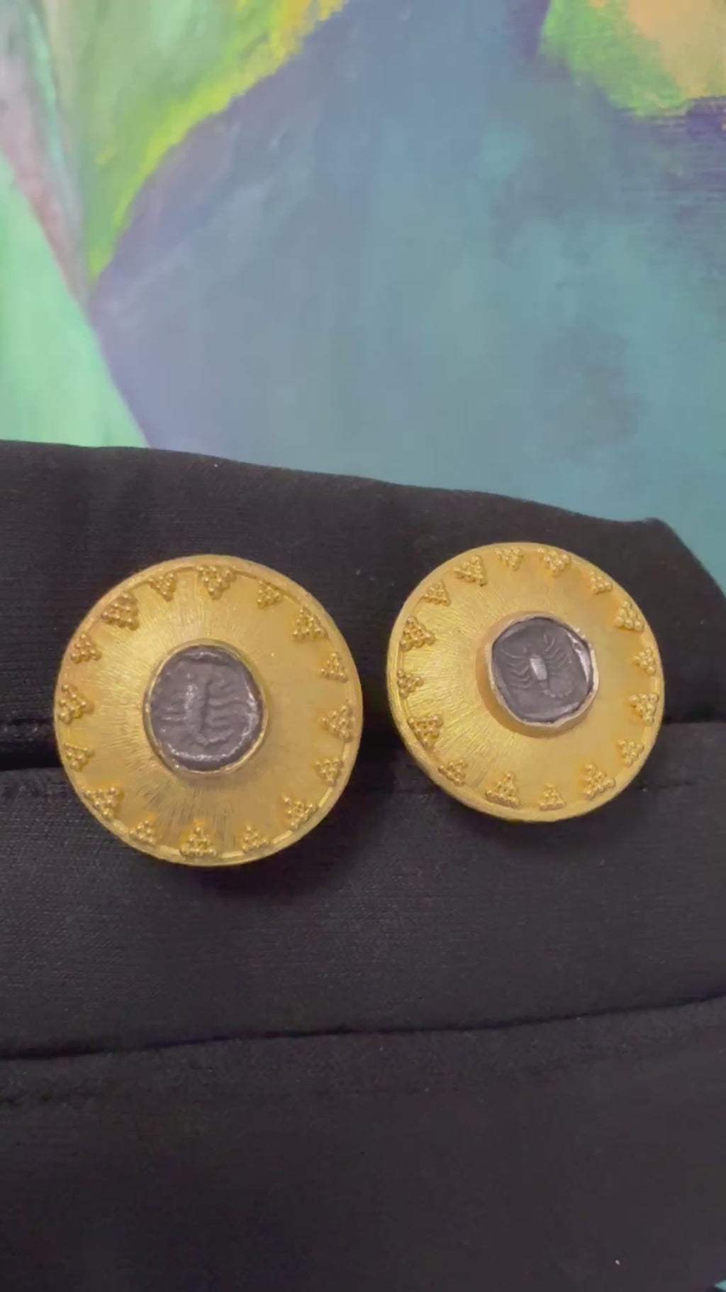 Retro 22K Gold Ancient Scorpion Coin Statement Earrings Hallmarked IRA 1997