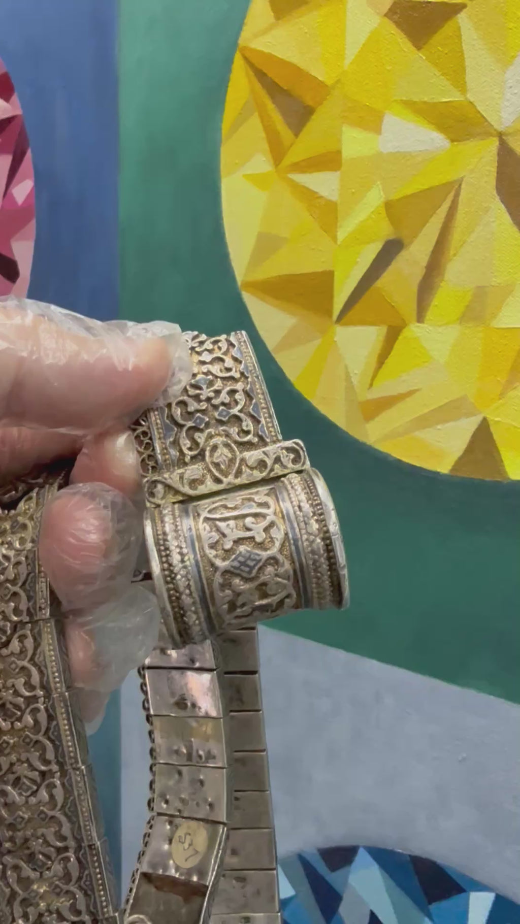 Originating from the Caucasus region (likely Armenia), features intricate repousse and niello work, commonly worn as ceremonial or warrior attire. Composed of linked silver plates with a large central buckle.
