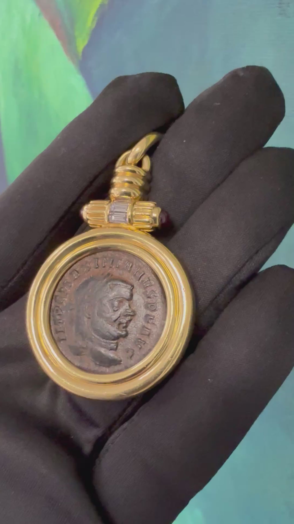 Retro Gold Medallion Pendant Roman Constantine Coin & Natural Diamonds