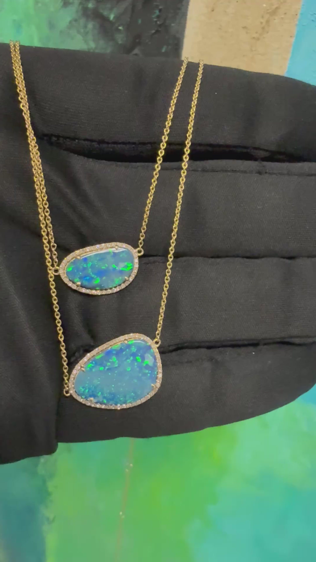 Exquisitely crafted with fine precision, combining the vibrant play of color in opal doublets with the bright and timeless appeal of natural diamonds. Total weight 5.7 g.