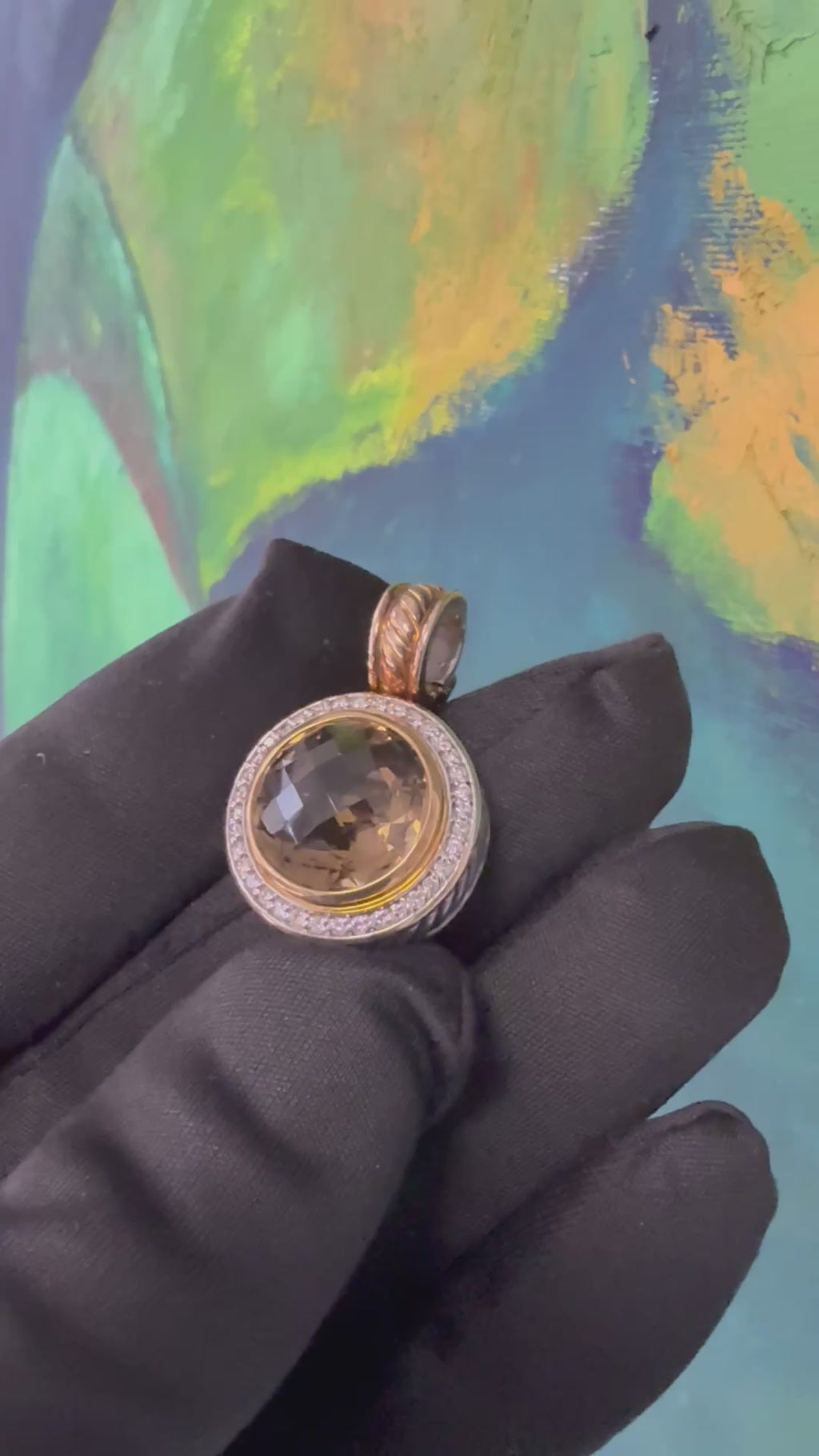 Modern Gold & Silver Natural Smoky Topaz & Diamond Pendant by David Yurman