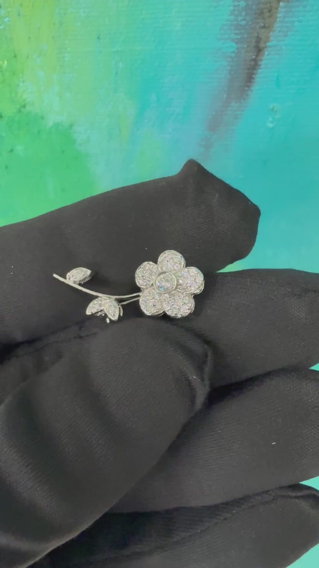 Retro White Gold 0.42 Carat Natural Diamond Flower Brooch Pin Circa 1970