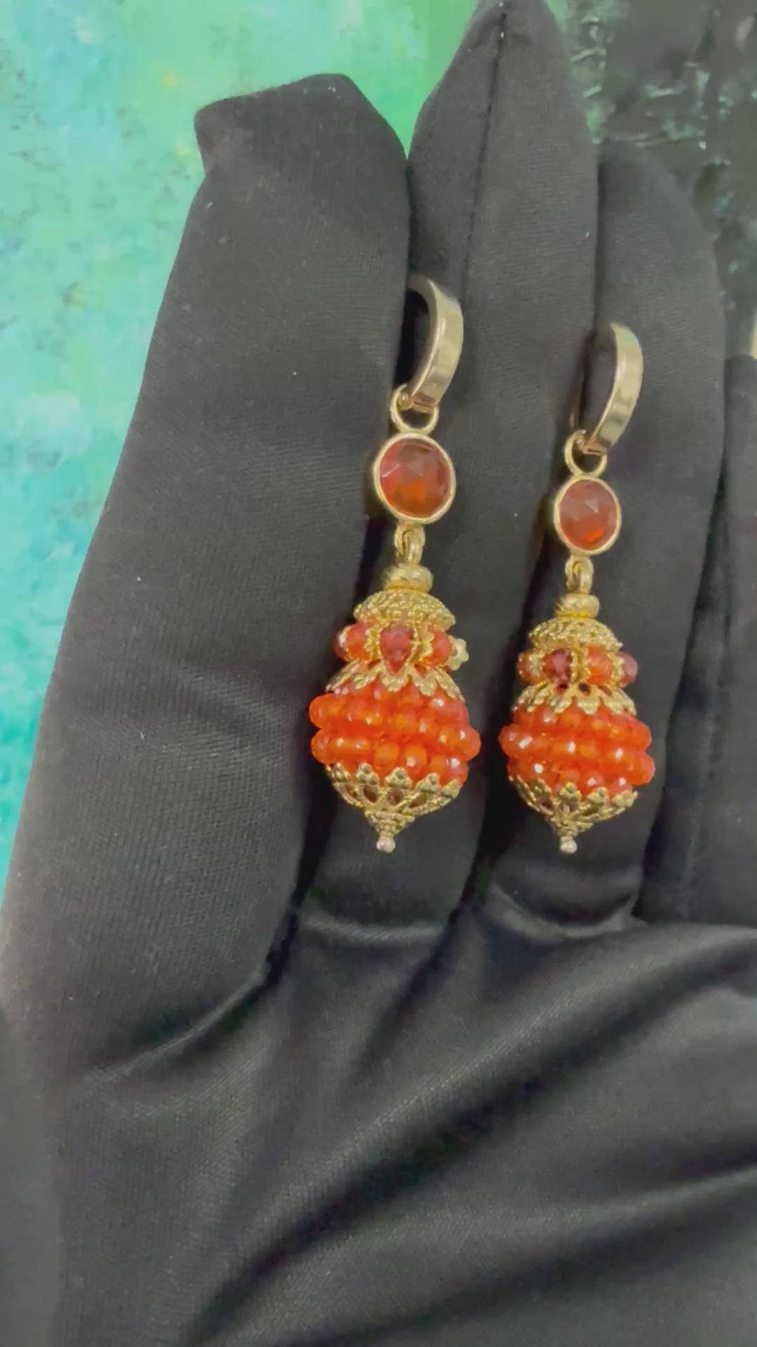 Retro Gold Drop Earrings with Layered Orange Mexican Rose Cut Opals