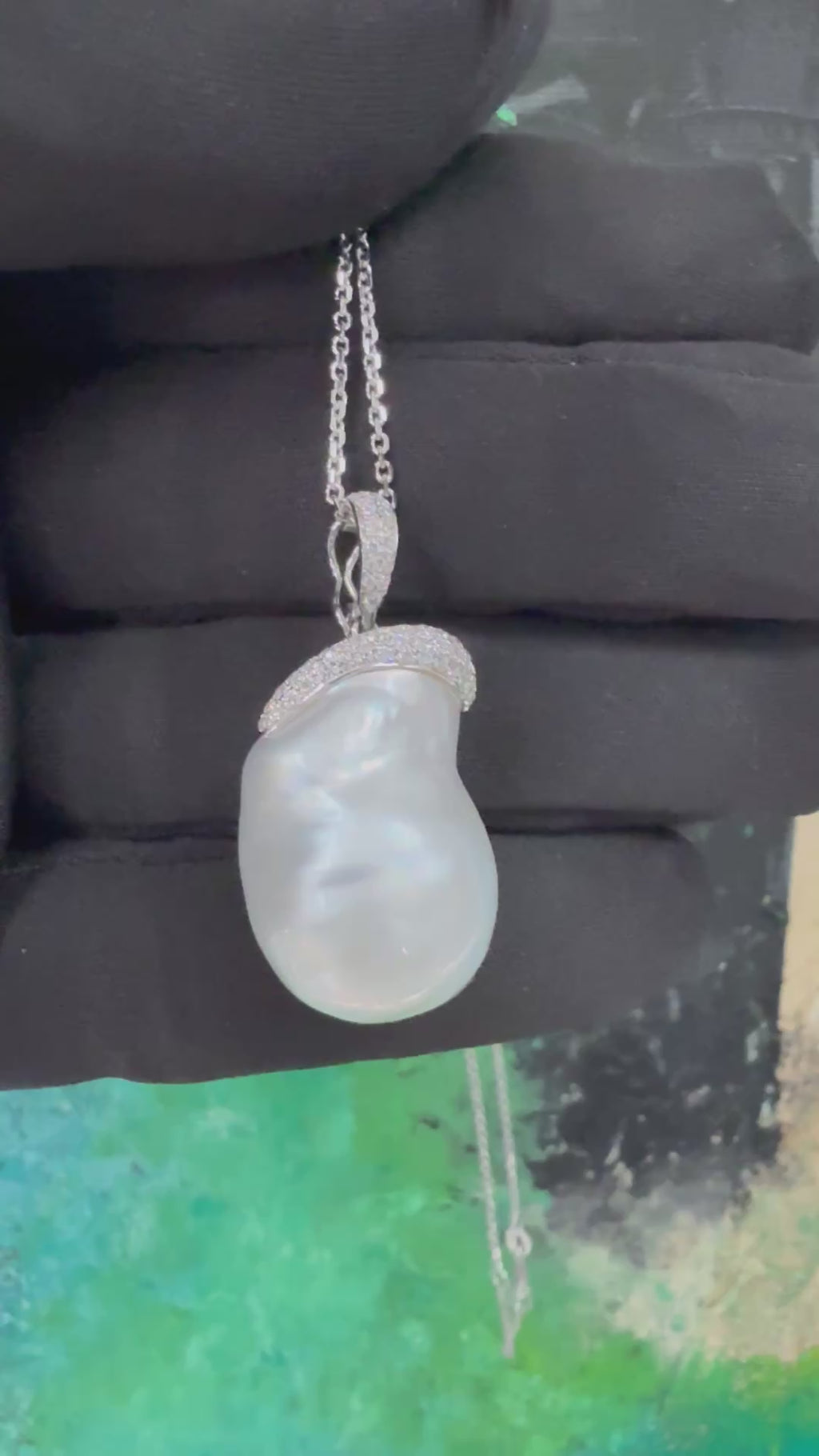 Retro White Gold Natural Australian Baroque South Sea Pearl & Diamond Pendant
