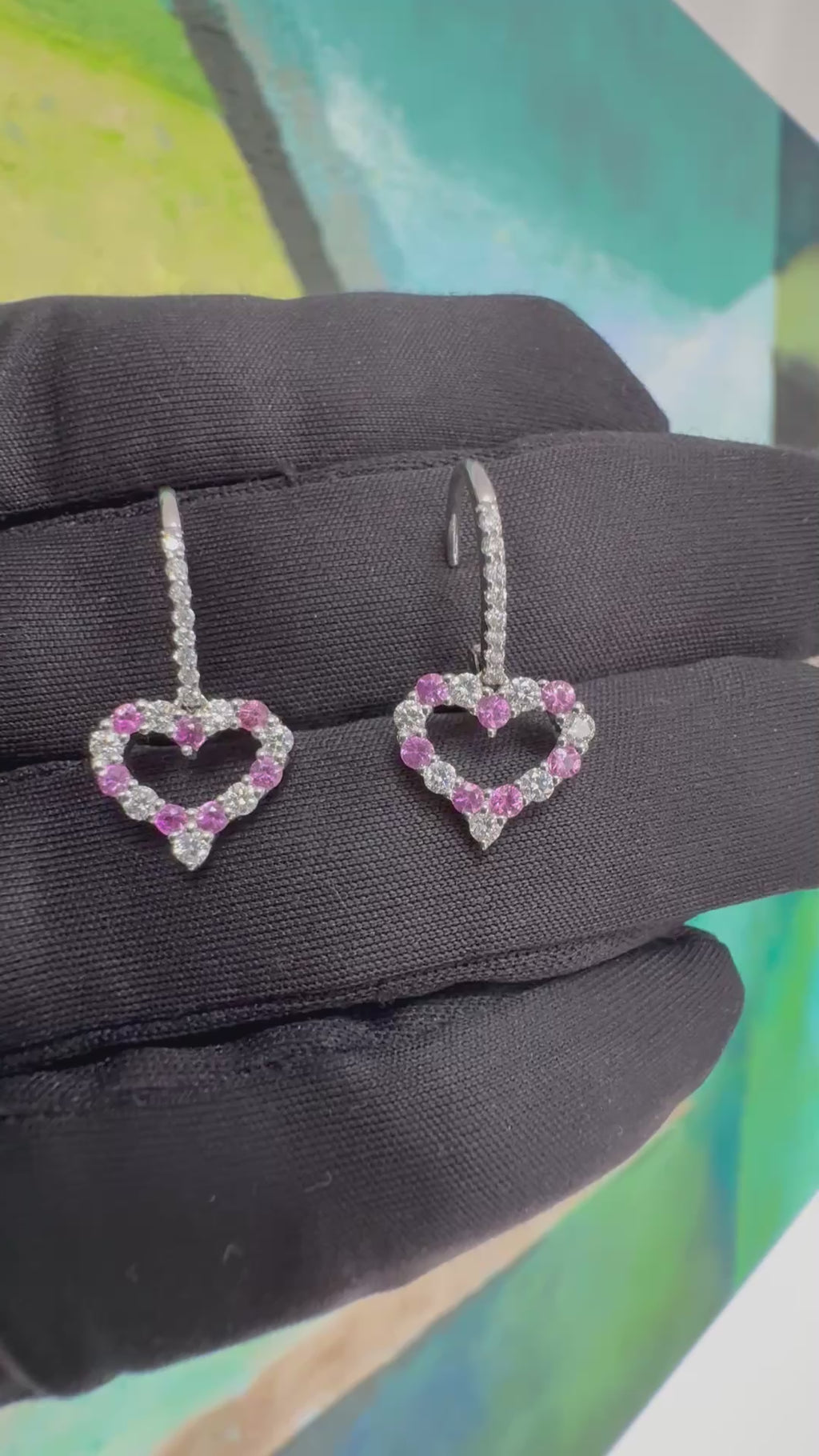 Modern White Gold 1.08 CT Natural Diamond & Pink Sapphire Heart Drop Earrings