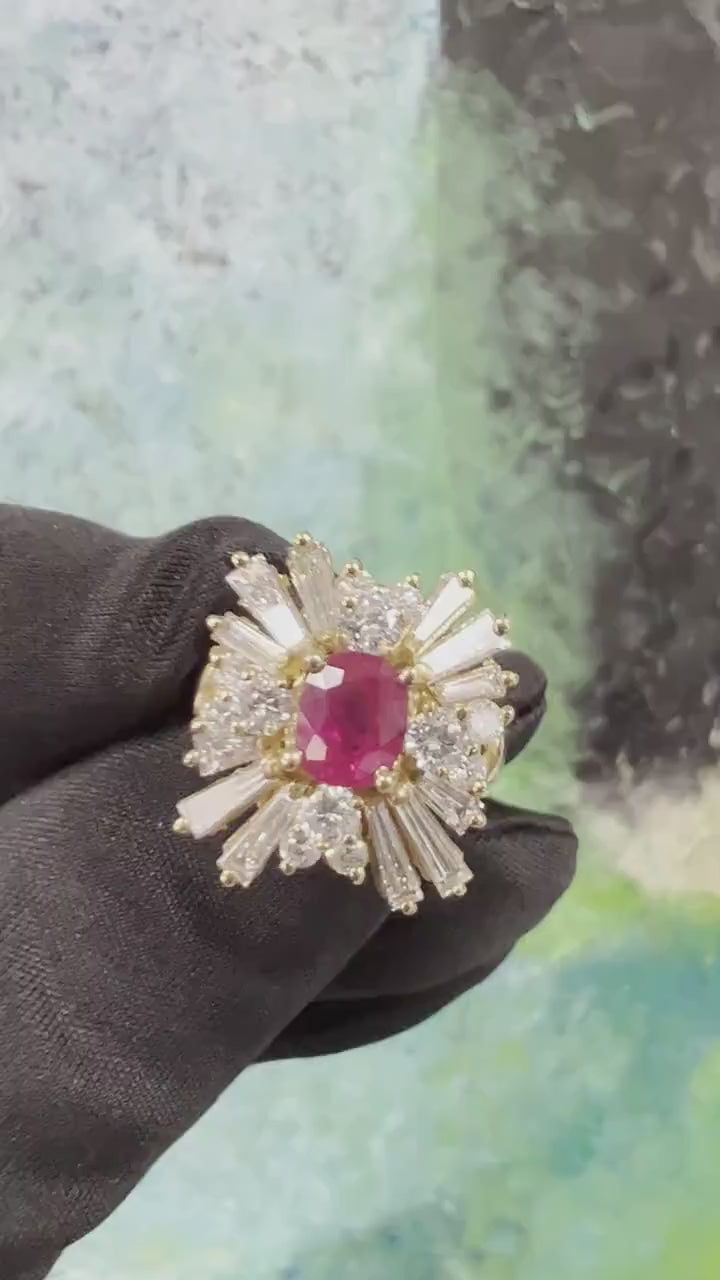 Retro Gold Cocktail Ring 4.5 Carat Natural Ruby & Baguette Diamond Circa 1960