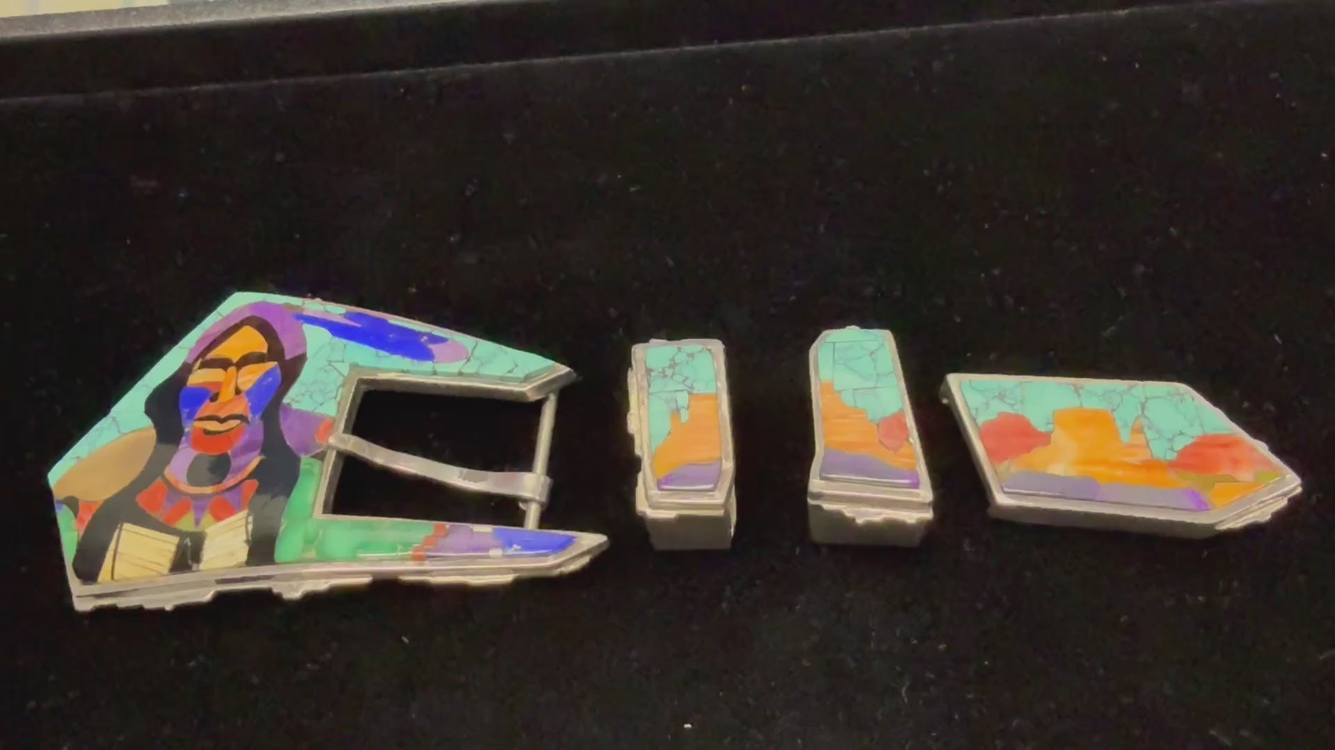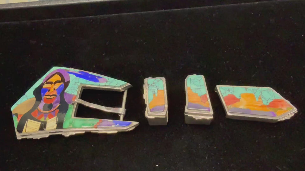 Retro Silver Gemstone Inlay Belt Buckle by Danny Romero