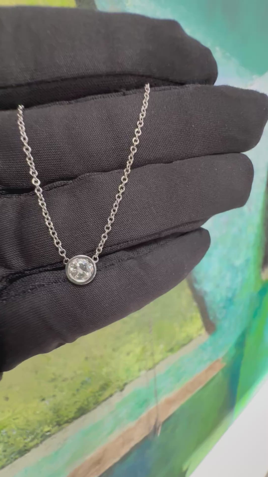 Modern White Gold 0.70 CARAT Natural Round Diamond BEZEL Set Necklace