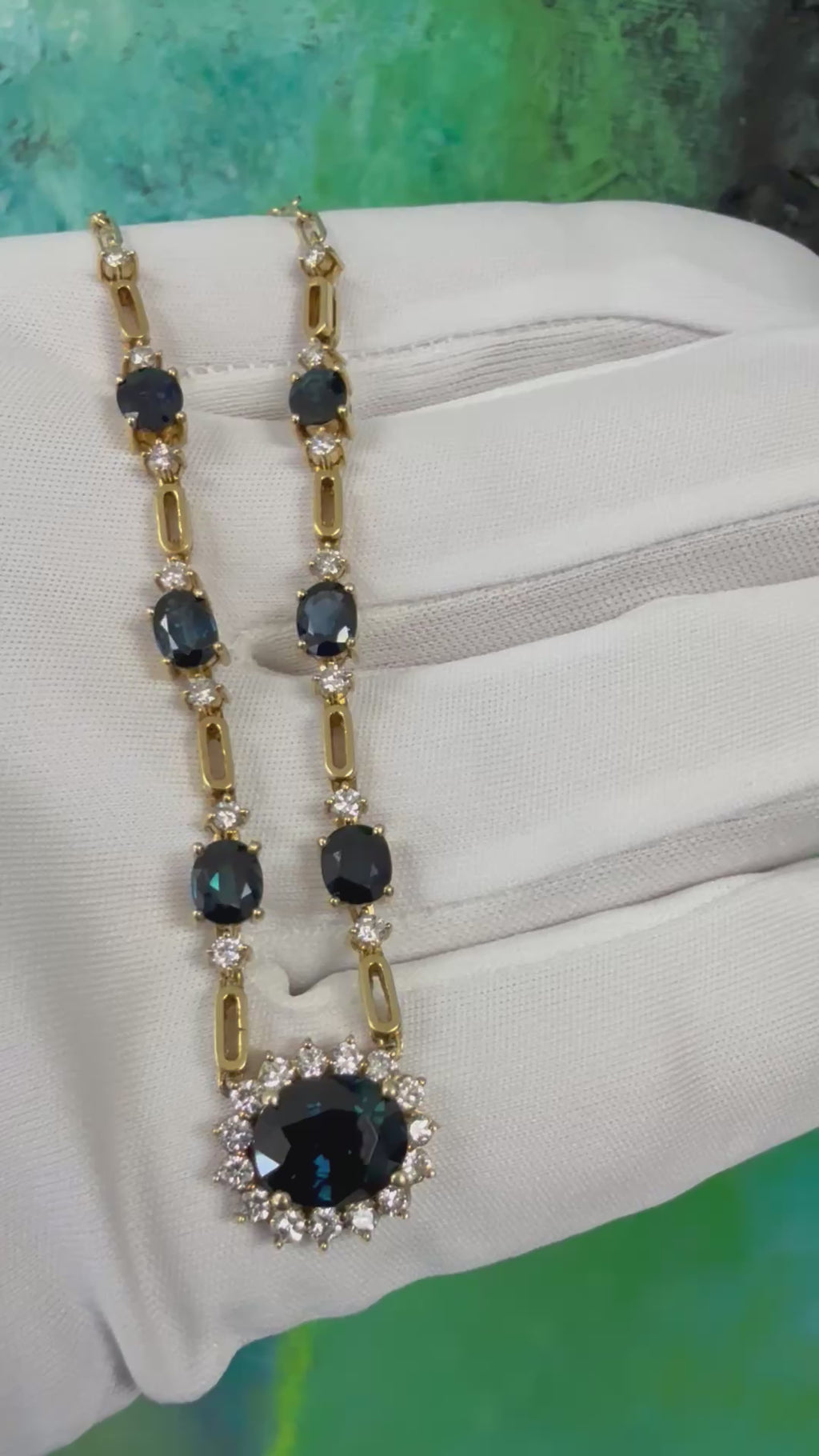 Retro Gold 7.55 Carat Natural Diamond & Royal Blue Sapphire Statement Necklace