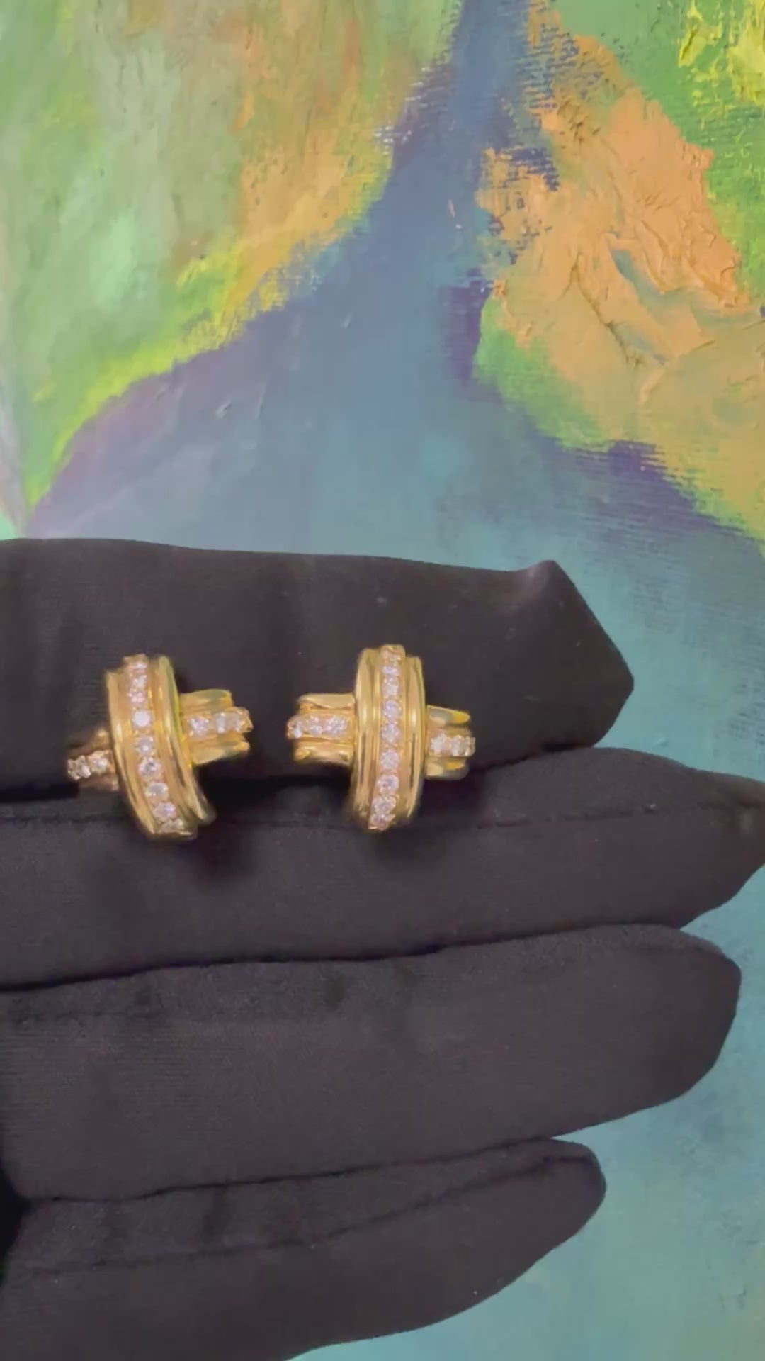 Retro Gold Tiffany & Co Natural One CT Colorless Diamond CrissCross Earrings