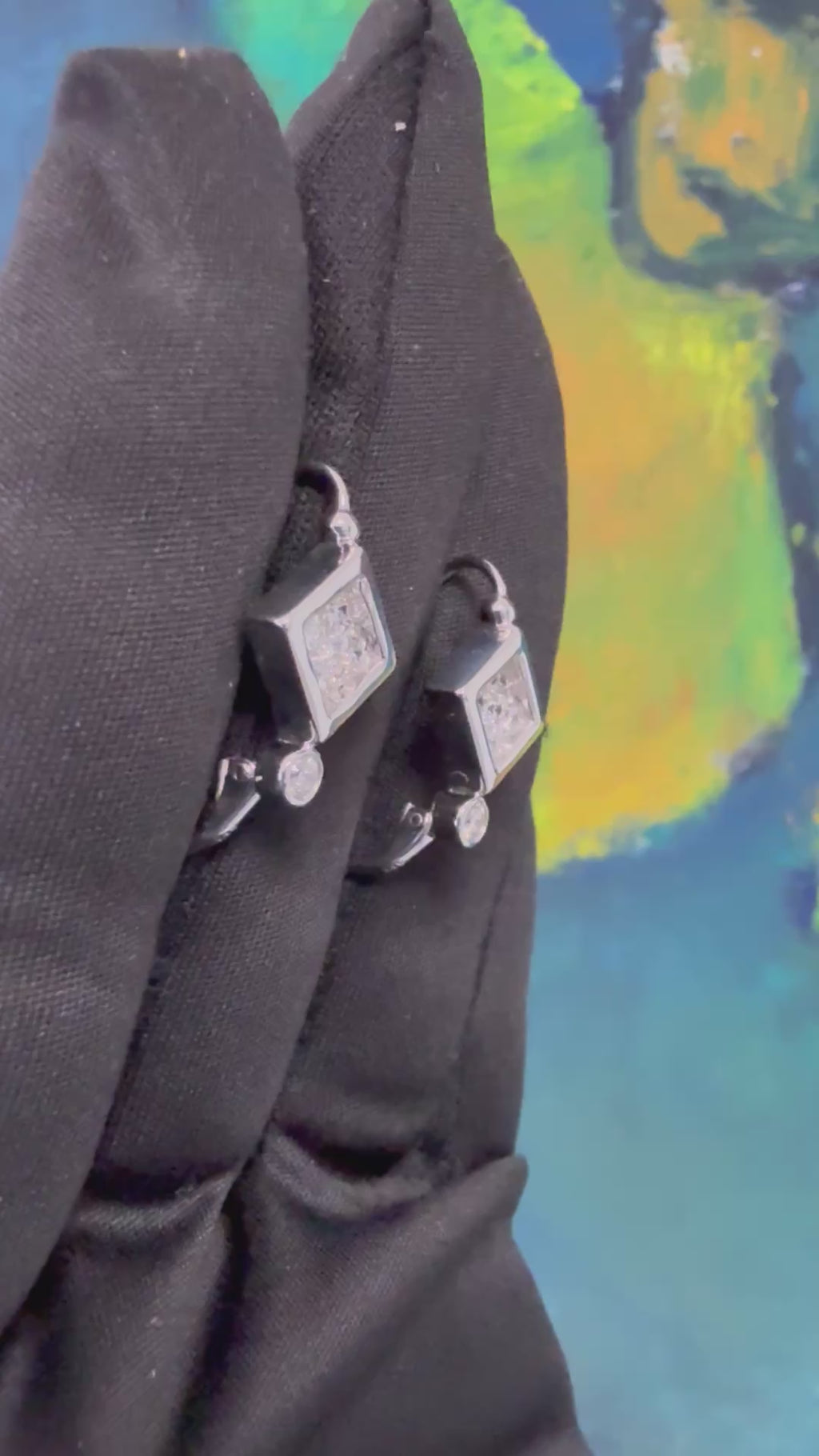 A refined pair of retro earrings crafted in 14k white gold and set with 12 natural colorless diamonds totaling approximately 0.6 carats. The earrings measure approximately 3/4 inch in length and 1/2 inch in width, with a total weight of 6 grams. A timeless design with subtle elegance.