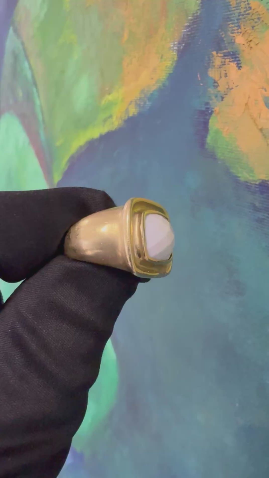 Weighing a total of 11.4 grams, this size 5 ring captures the artistry and elegance of retro design, pairing the luminous charm of natural white coral with the timeless warmth of yellow gold. A true statement piece with distinctive character.